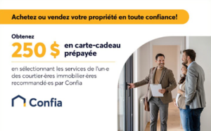 En tant que membre de la CSQ, obtenez 250 $ en carte-cadeau prépayée* en sélectionnant les services de l’une ou l’un des courtiers immobiliers recommandés par Confia pour réaliser votre projet d’achat ou de vente.